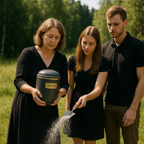 Rodina rozptyluje popel zemřelého po kremaci na místech, kde to miloval.